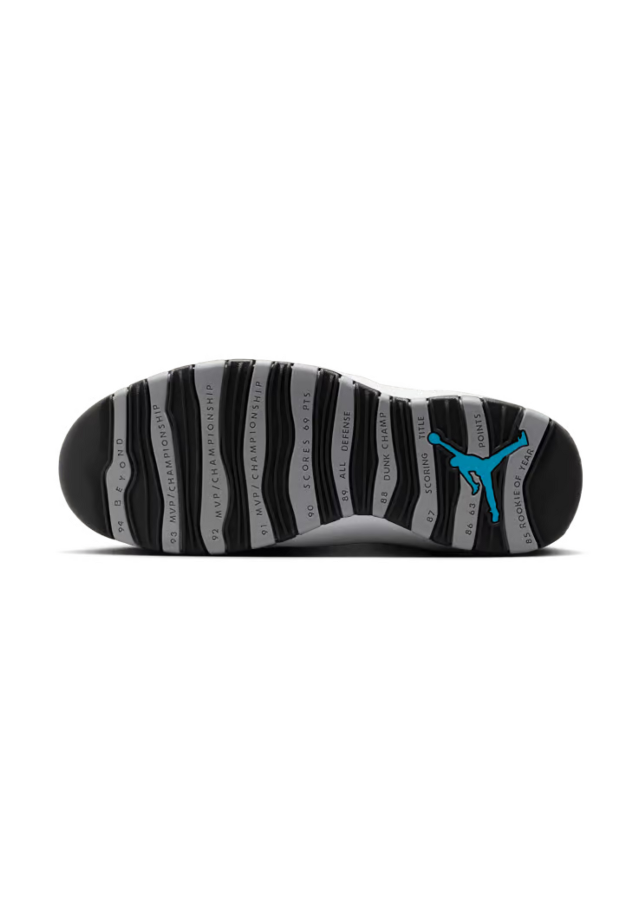 Suela con las icónicas franjas que conmemoran los hitos de la carrera de MJ.